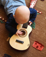 This fun toy is a mini version of a classic guitar, designed to spark joy in youngsters' hearts. Supplied with steel cords and a plectrum.