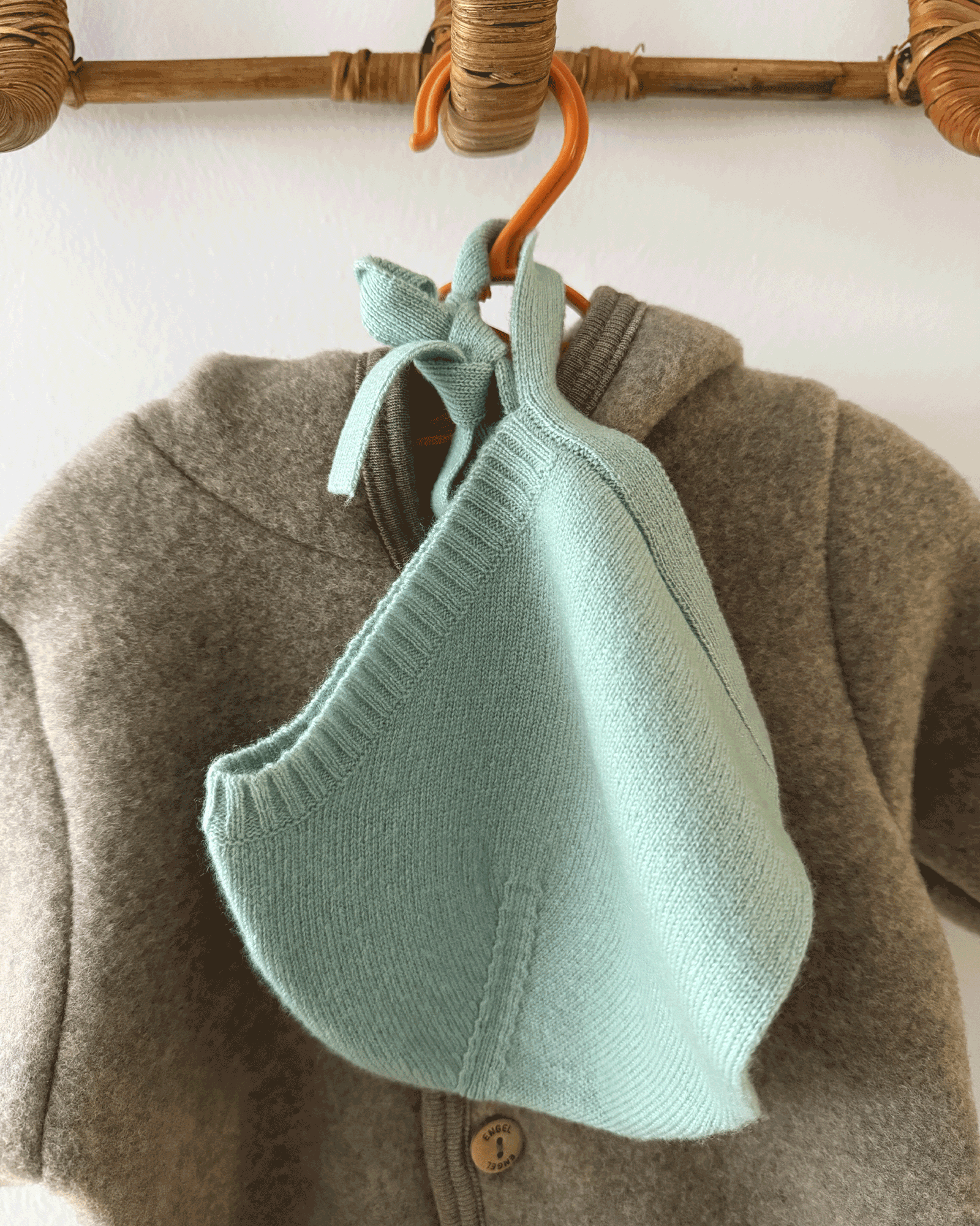 Cashmere and wool may be used all year round: It keeps baby warm on a winter day, and is lovely and light to wear on a windy Summer evening.