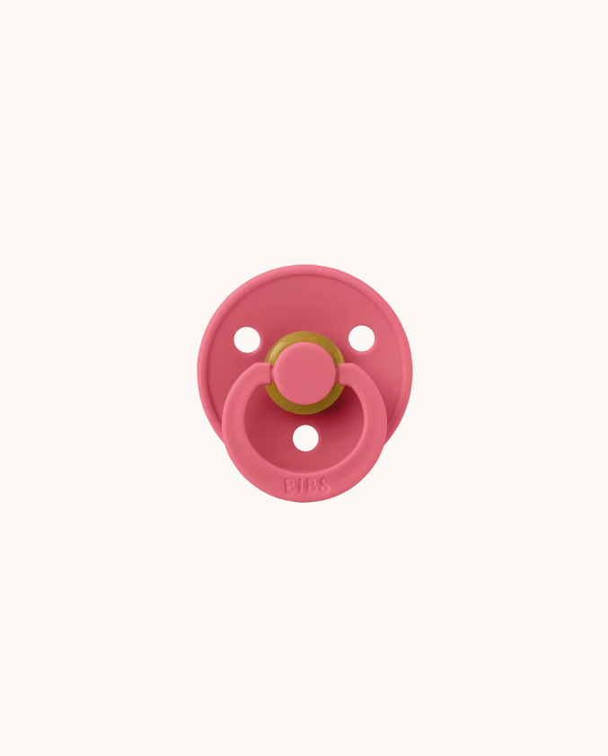 The Bibs classic pacifiers are designed and produced in Denmark, and are available in the "Bibs size 2". This size is suitable for most newborns and up to the day where a pacifier is no longer needed. See exact measurements under the tab 'Product details'.