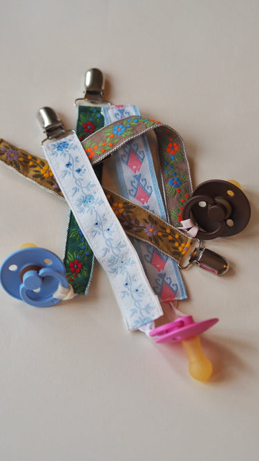 Matching our handmade pacifier clips, these 100% natural rubber latex pacifiers come in a variety of beautiful colours.