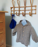 This jacket comes with a hoodie, classic fit and long sleeves. Wooden buttons go down the front and allows your baby to wear it open or closed.