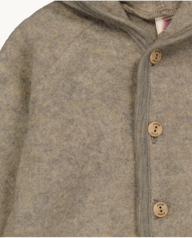 Keep your baby warm with this soft baby jacket, made from certified organic wool fleece.