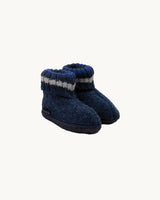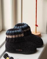 The Wool Shoe is a wonderful indoor shoe that comes with a sock-like top, that keeps your child warm and comfortable. The "sock" ensures that the shoe stays on the foot, but it is fully bendable and flexible and with no hard edges that may rub into the lower ankle as your child bends or sits downs.