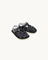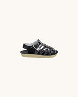 The perfect summer sandal for little explorers. This is Sailor, a closed toe sandal for babies, here in a black colour.