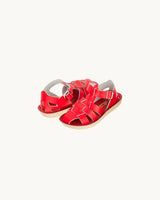 The perfect summer sandal for little explorers. This is Shark, a closed toe sandal for babies, here in a red colour.