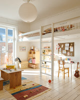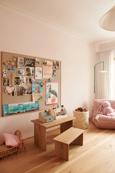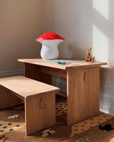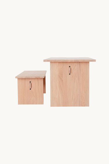 The table is produced in Europe and made from 100% solid oak. It may be used just as is, paired with any other kid's chair for a contrasting look – or pair it with the Arca Bench for a Scandinavian look in solid, natural wood.
