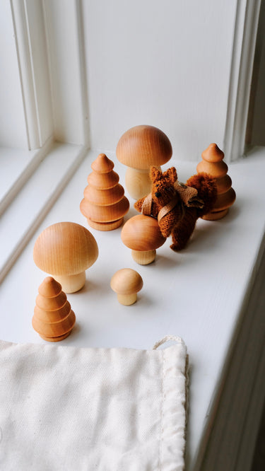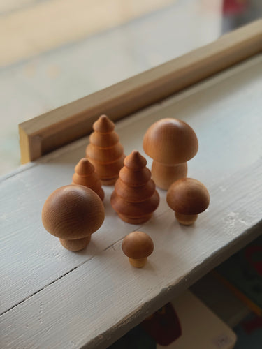 A lovely set of four wooden mushrooms and three trees – perfect for play or as small decorative elements in the children’s room.