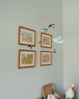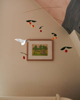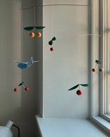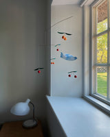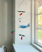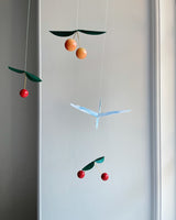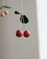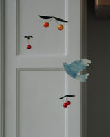 The Cherry Birds mobile from Danish brand Flensted Mobiles is a wonderful and truly unique piece, showcasing five cherries and one bird, chasing a taste of the sweet, red berry. The cherries come in different sizes to make them look more real while they slowly move and turn as air flows through the room.