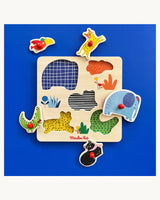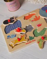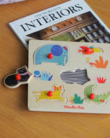 A lovely wooden puzzle with 5 large pieces with fun and colourful illustrations, that help your baby understand shapes and colours.