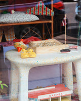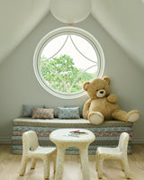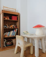 This is their table; a chubby-looking, playful table, matching their Charlie Chair perfectly. Its soft forms and rounded edges, as well as its sturdy body and legs, make this a great table for toddlers and kids.