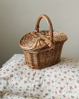 A little, cute rattan picnic basket, perfect size for all sorts of treasures. The lid opens from both sides, making it easy to pack and unpack toys.