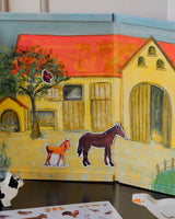 A cute fold-out book with magnets to be placed and moved around the farm. This 'book' is perfect for traveling, dining at a restaurant or afternoons at home.