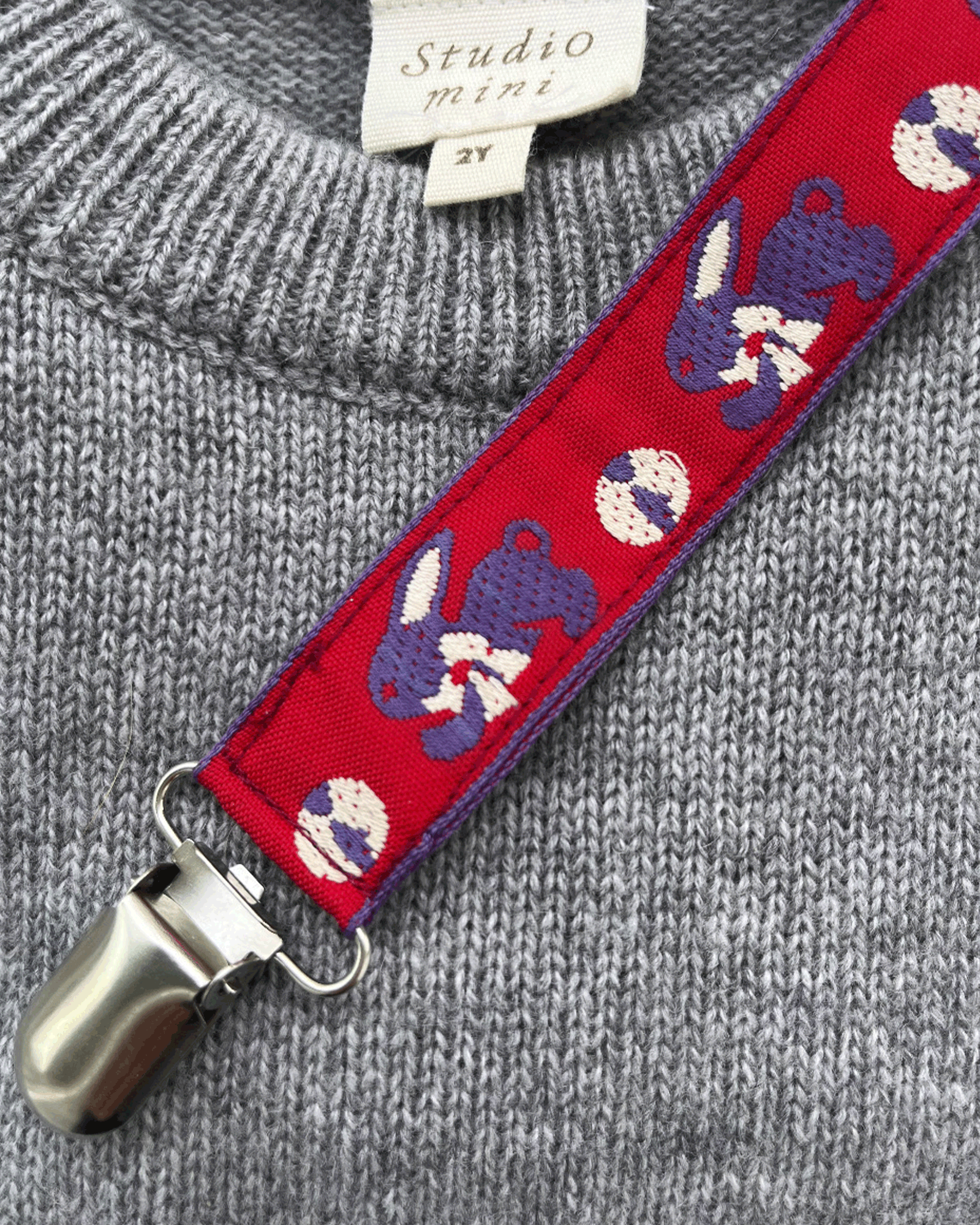 These wonderful pacifier clips are made exclusively by Cecilie Nachman for Studio Mini. Minor differences may occur between them as they are made by hand.