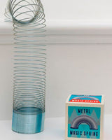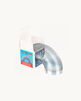 It features a metal spring which can walk down the stairs, when placed on the top stair and then given a gentle push.