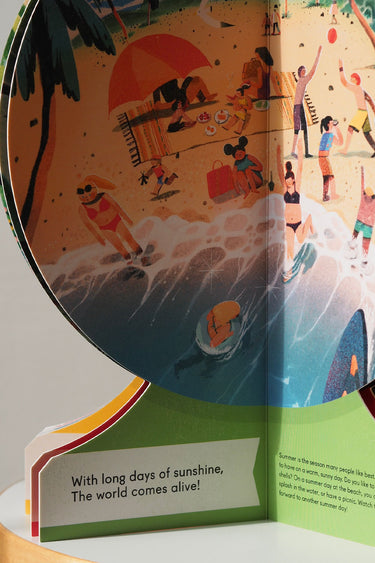 Through the pages, the youngest readers are invited to identify and experience four amazing seasons: Frosty winter, blossoming spring, bountiful summer, colourful autumn.