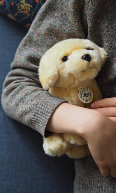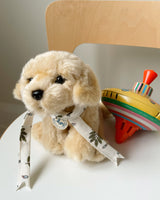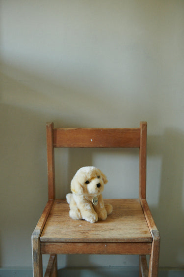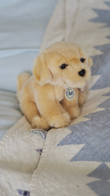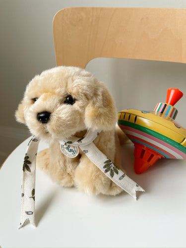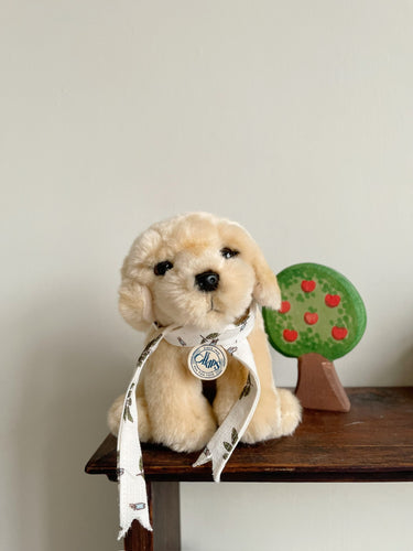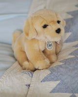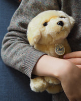 This golden-haired little teddy is the perfect companion around the house, and maybe on road trips and when traveling? She has a great size for cuddling and is easy to bring along where ever you go.