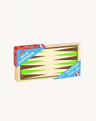 A classic Backgammon game in a beautiful wooden suitcase, made by the French brand Jeujura. The suitcase makes it easy to take the game on the go and keeps all the pieces neatly stored when not in use.