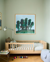 The poster comes with warm tones of green, blue and a touch of pink making it fit into any nursery or kid's room.