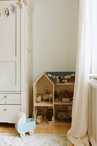 Pigerne elsker at lege med deres store Maileg dukkehus.