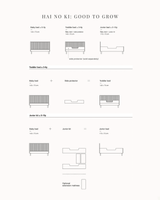Når jeres barn er klar fra at skifte tremmeseng ud med en juniorseng fjernes den ene side helt. I kan her vælge at tilføje Hai No Ki Sengehesten for at give lidt ekstra sikkerhed, eller I kan lade siden være helt åben og fri. Sengen er nu en juniorseng med samme liggemål, som da den var tremmeseng: 70x140 cm.