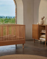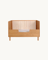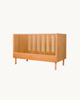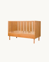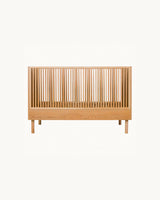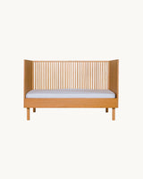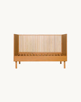 En smuk, enkel tremmeseng fremstillet i solidt asketræ.
