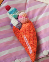 En helt vidunderlig, enestående håndstrikket isvaffel med en blid klokke indeni. Baby ranglen er designet af Helle Høgsbro Krag, der står bag det danske brand Creme de la Creme alà Edgar.