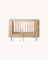 En smuk tremmeseng fremstillet i egetræ samt et konverteringskit, der nemt omdanner tremmesengen til en toddler seng og senere en juniorseng. Med dette sæt får I en seng, som jeres barn kender og elsker, og kan bruge fra fødsel og op til ca. 9-års-alderen.