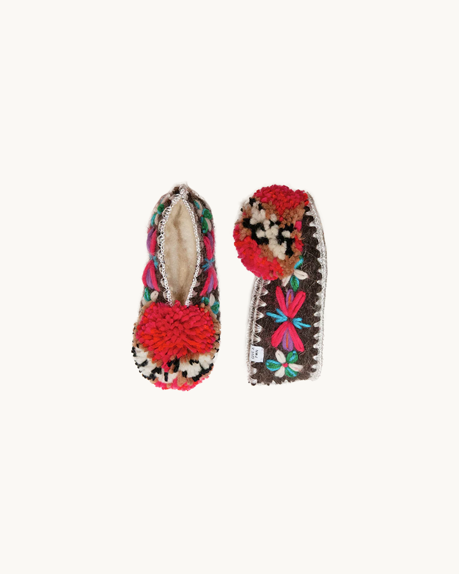 Fantastiske, fine, bløde og håndlavede hjemmesko – fremstillet i uld med lædersål. De kommer med de smukkeste detaljer og en stor, iøjenfaldende ponpon, som man ikke kan andet end at holde af.