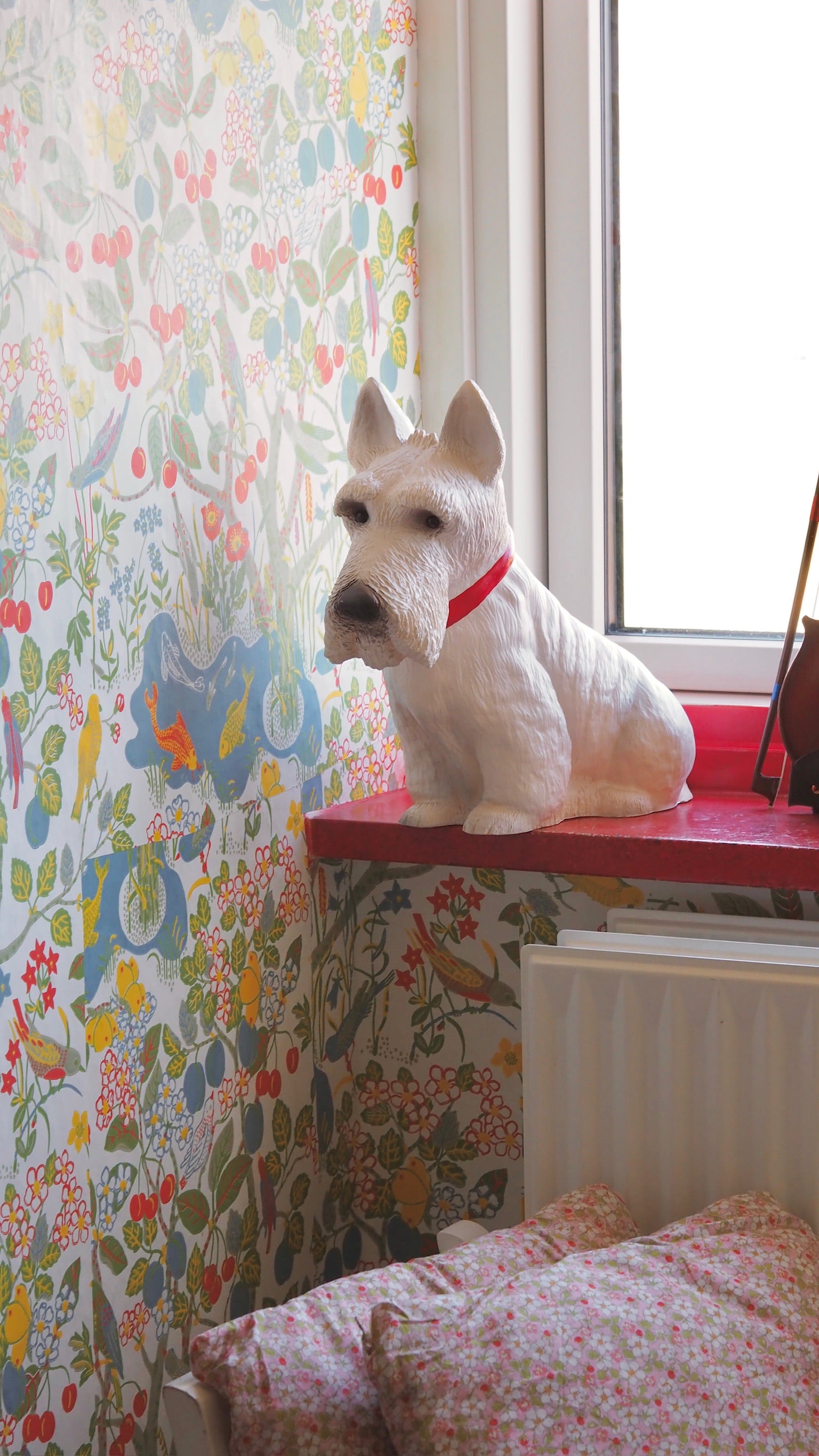 En sød Scotty hundelampe, der giver et varmt og blødt lys.