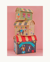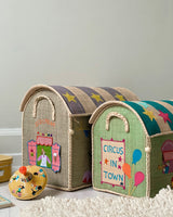 De smukke farver, det praktisk låg (husets tag) og de vidunderlige broderede detaljer gør kurven velegnet til at placere hvor som helst i hjemmet. Alle Raffia opbevaringshuse er håndlavet, og derfor er der ikke to der er ens.