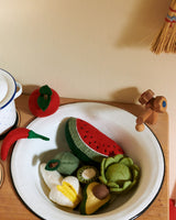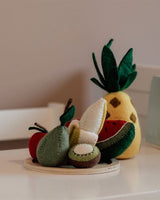 A fruit set that includes 6 pieces of fruit, perfect for the little play kitchen.