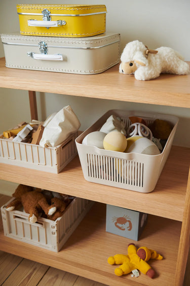 Perfect for toys, hair clips and other smaller items, and the little metal handle enables your toddler to carry his or her treasures where ever you go.