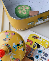 A wonderful yellow suitcase, perfect for treasures or for carrying stuff around the house, into the garden or on short trips.