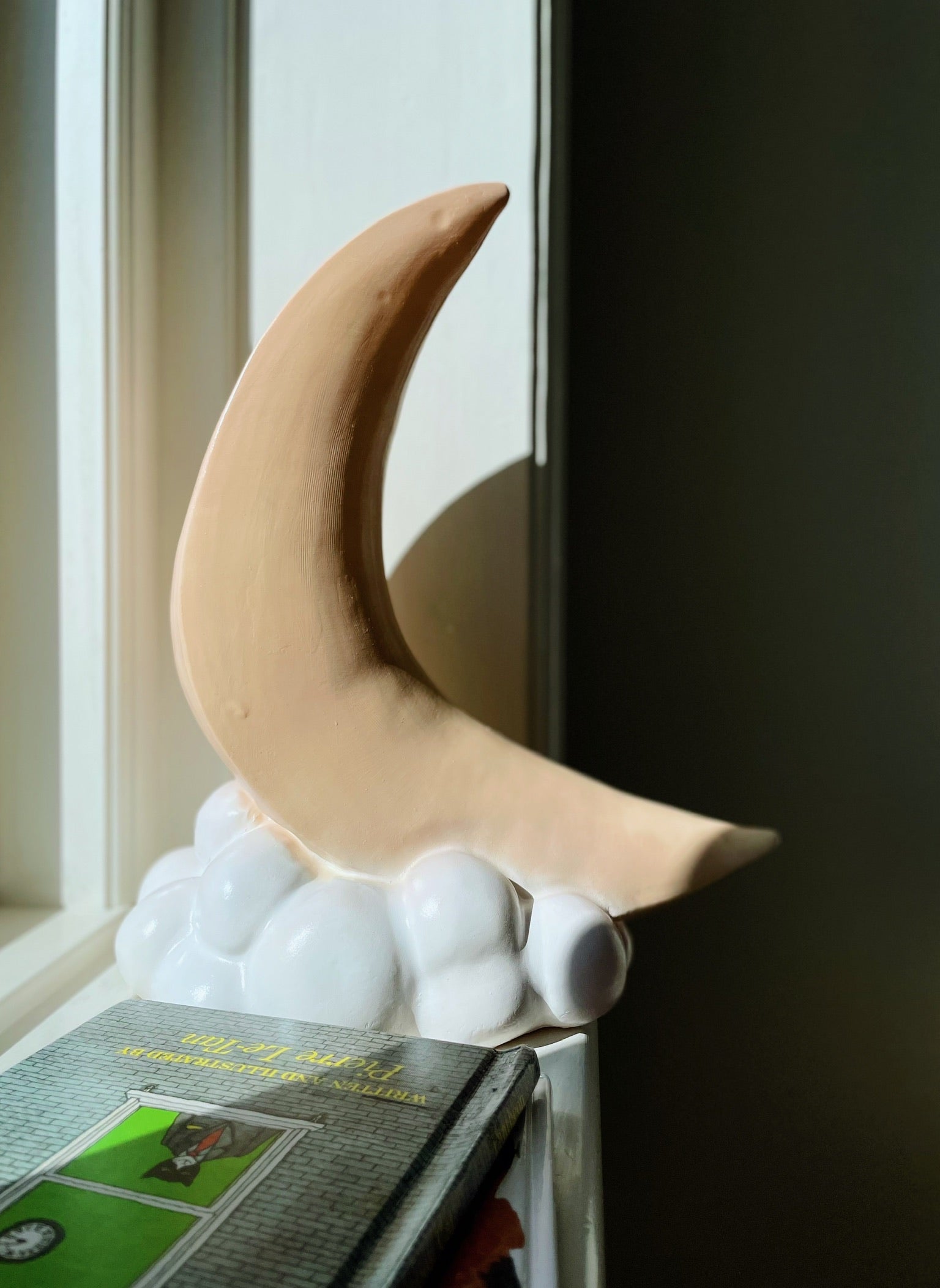 The Moon Lamp is made of vinyl, which does not heat up. It is therefore safe to leave the lamp lit during the night, for all those little ones who need a bit of added security while drifting off to sleep.