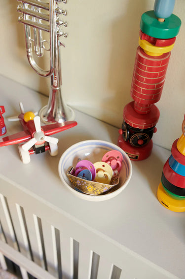 - Clean and sterilise the pacifier every day. Do not use microwave sterilising or dishwasher detergents as it destroys the natural rubber. Simply put the pacifiers in a sieve and let boiling water run over them. Leave to dry until next morning.