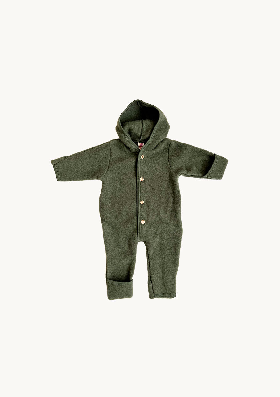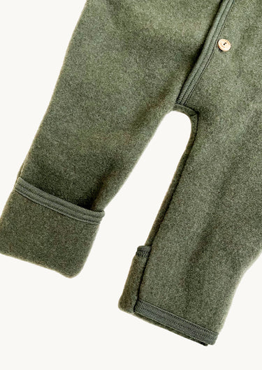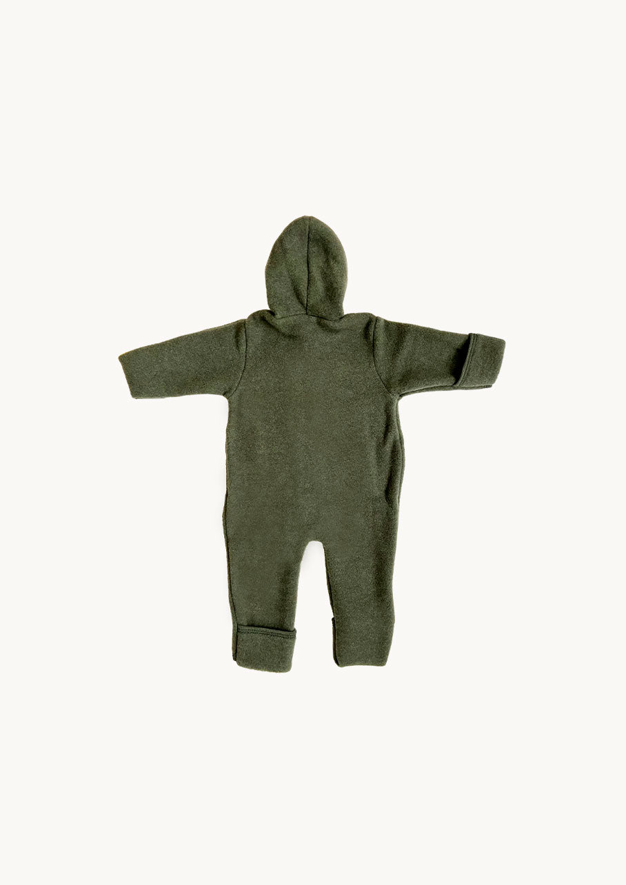 Keep your baby warm with this soft baby romper, made from certified organic wool fleece.