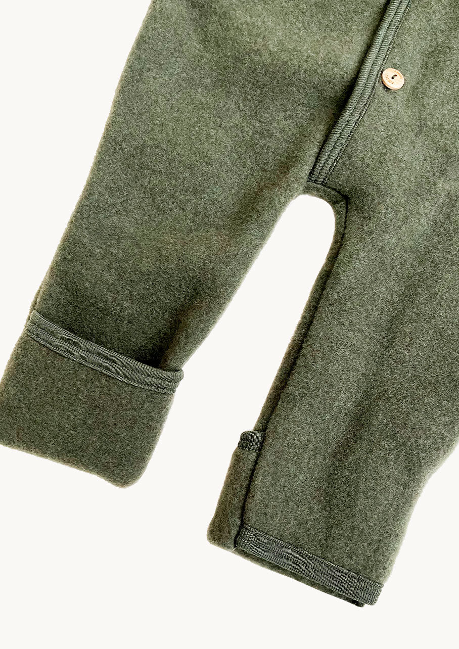 Hands and feet can be turned and closed over baby's baby's hands and feet, making this romper perfect for naps in the stroller or when you are on the go. The body suit is made from 100% merino wool fleece which is certified OEKOTEX and completely free of chemicals.