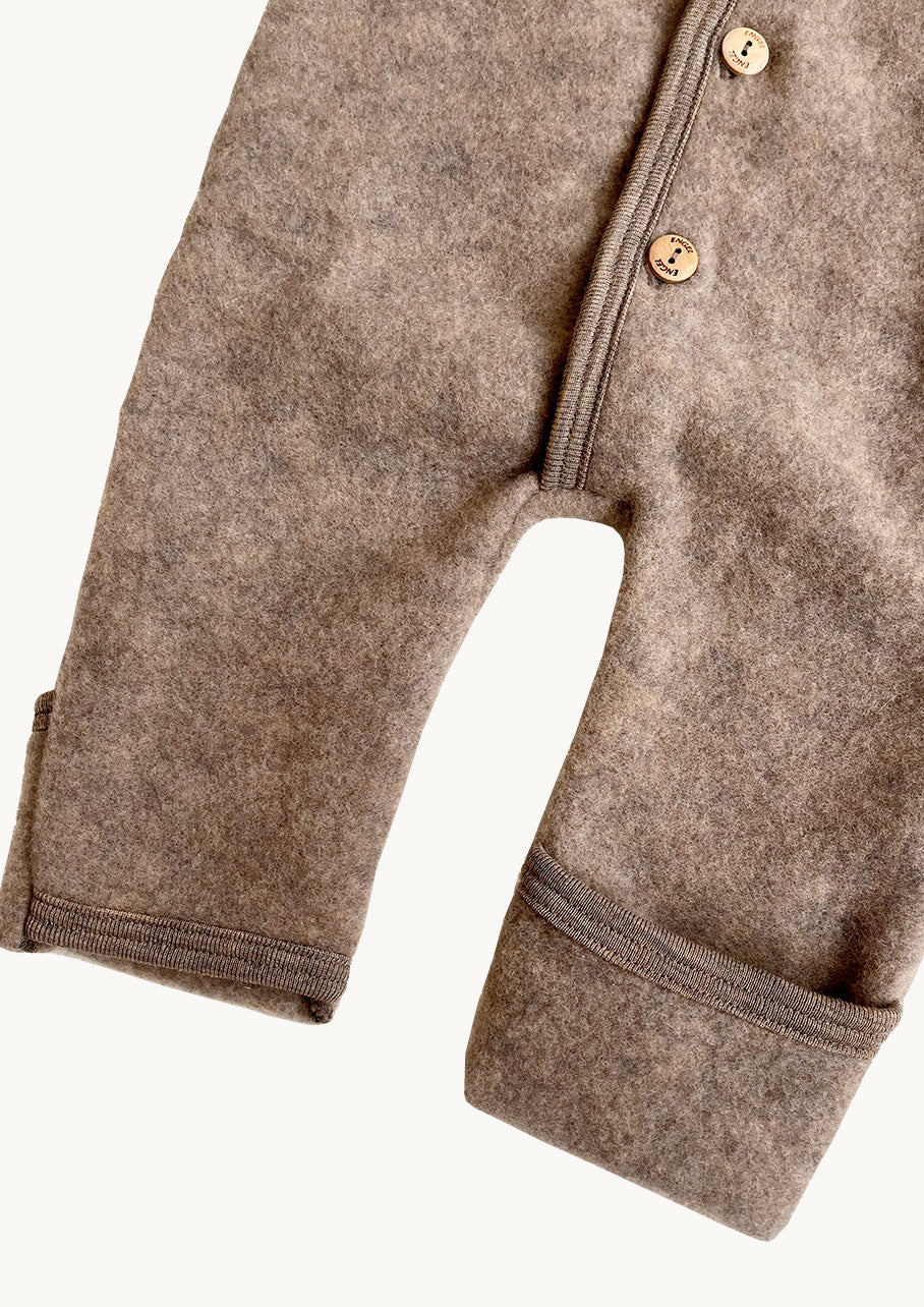 Hands and feet can be turned and closed over baby's baby's hands and feet, making this romper perfect for naps in the stroller or when you are on the go. The body suit is made from 100% merino wool fleece which is certified OEKOTEX and completely free of chemicals.