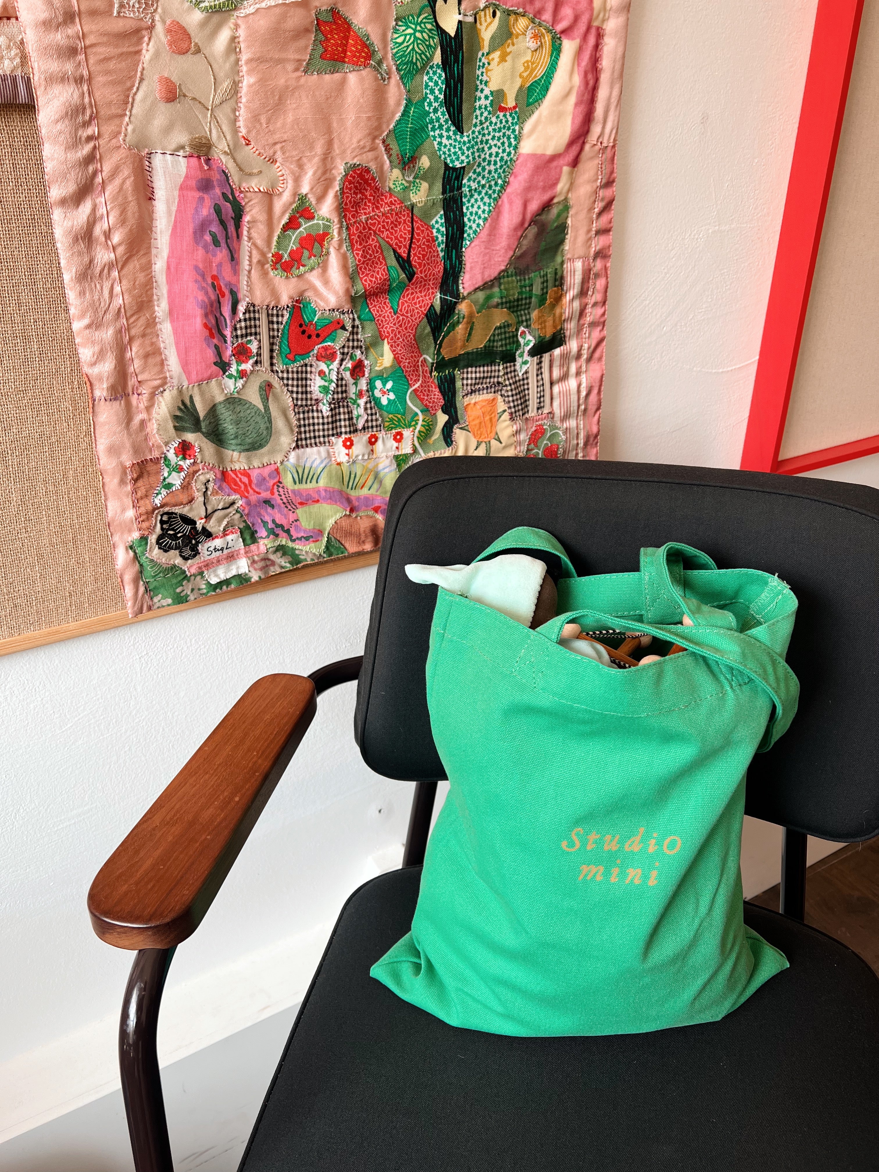 It comes in a fresh green color with the Studio Mini logo printed on in a beautiful dark green.