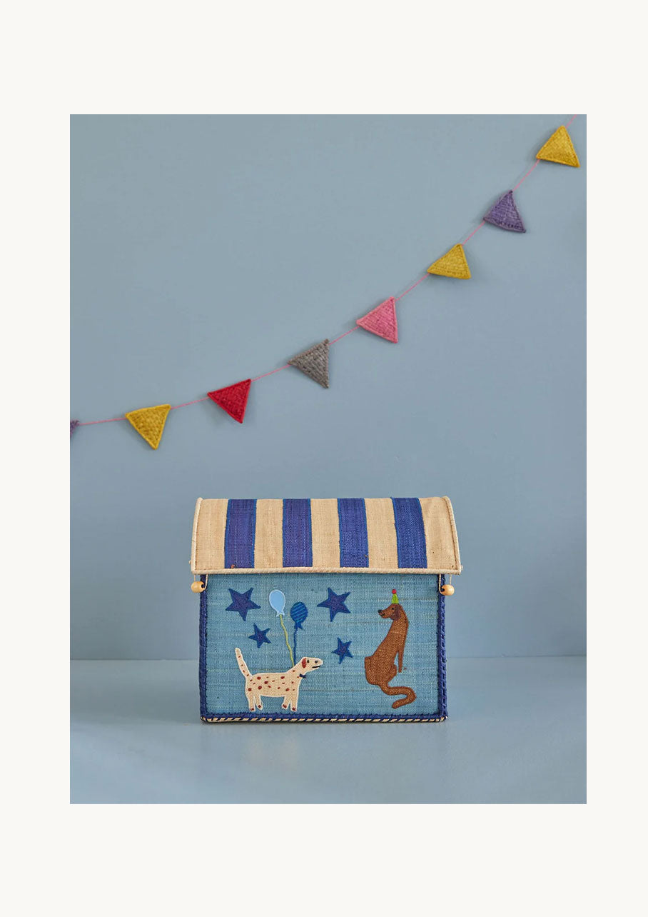 The Raffia Storage House is a lovely, embroidered, handmade and practical storage basket.