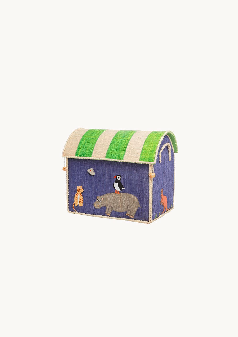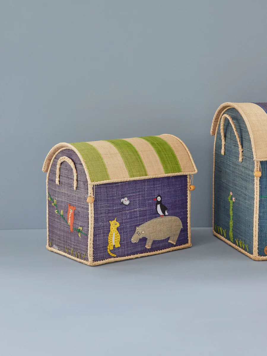 Pretty colours, a practical lid (the roof of the house), and wonderful, embroidered details make this storage basket suitable to place anywhere in the house.